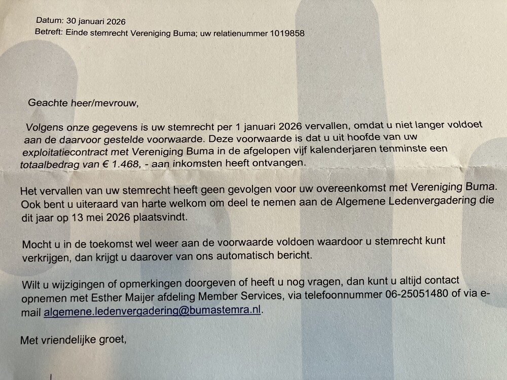 Vrijdag 06 februari 2026Ik kreeg post van Buma/stemra: